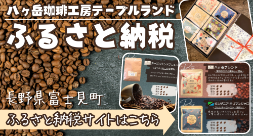 富士見町のふるさと納税の返礼品で八ヶ岳珈琲工房テーブルランドのコーヒーをお選びいただけます